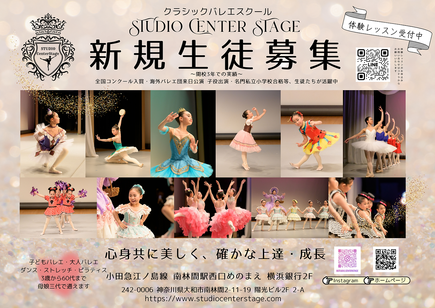 スタジオセンターステージでは、新規生徒を募集中です.ᐟ